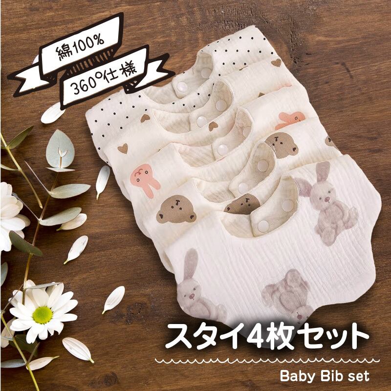 よだれかけ スタイセット 出産お祝い プレゼント よだれかけ 新生児用 サイズ調整可能 赤ちゃん 4枚セット スタイ よだれカバー ガーゼ 花びら型 女の子 男の子 可愛い お洒落 360度回転 スナップボタン ベビー 出産祝い 通気性 柔らかい かわいい 保育園 幼稚園 食事用 | テゾーロミオ